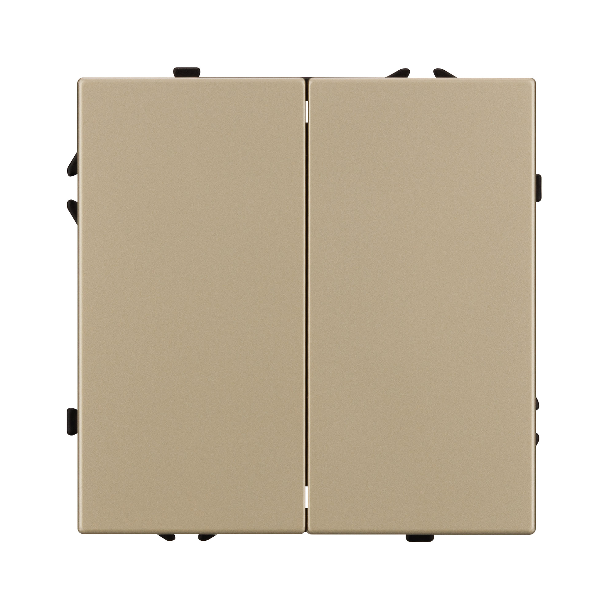 Механизм выключателя света клавишный на 1 пост 2 клавиши (проходной). Цвет - золотой, с Soft-Touch покрытием. Без фронтальной рамки. Уровень пылевлагозащиты IP20. Выключатель устанавливается в стандартный круглый подрозетник круглого сечения диаметром 60мм.