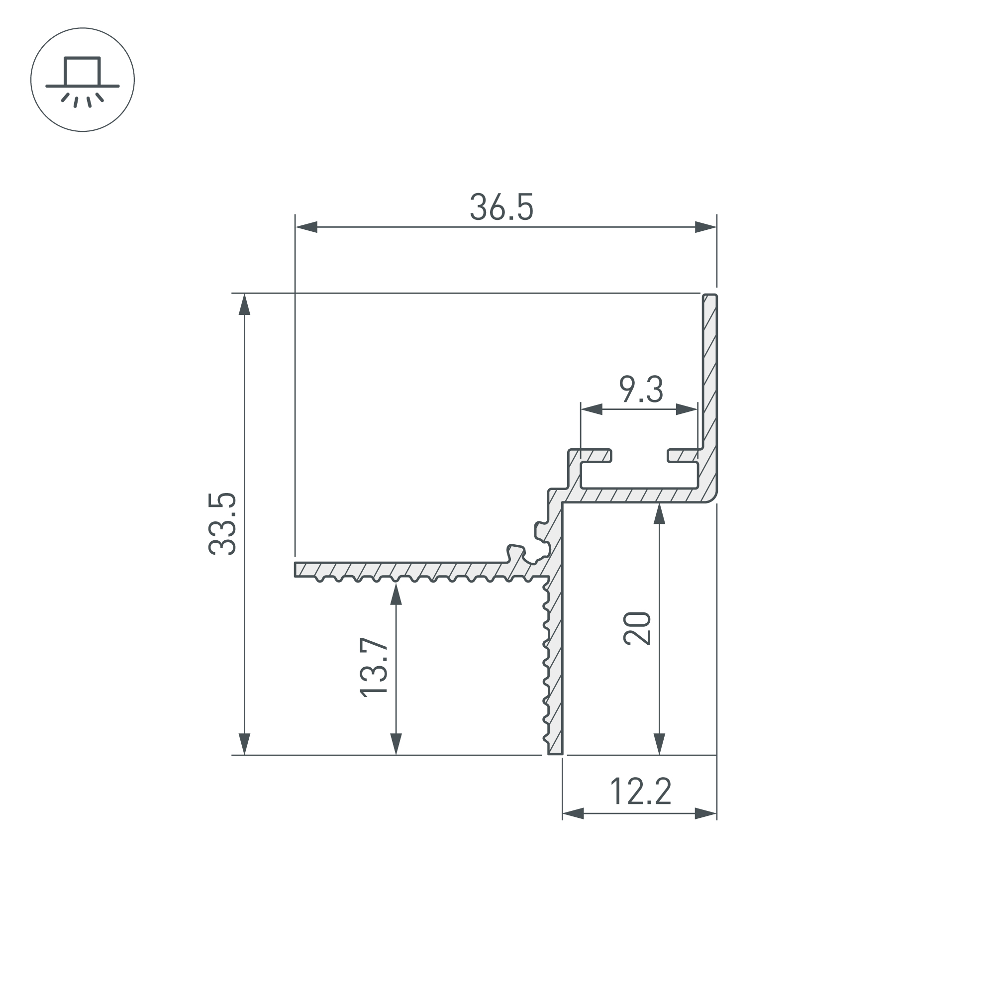 Алюминиевый встраиваемый профиль. Цвет-белый RAL9003 (порошковая окраска). Теневой несветовой профиль для создания зазора 12,2 мм между поверхностью потолка и стены. Создает эффект парящего потолка с четким контуром и небольшой тенью по периметру помещения. Такое решение визуально расширяет пространство и идеально подходит для современного минималистичного интерьера. Габаритные размеры (L×W×H): 3000х36,5х33,5 мм. Аксессуары приобретаются отдельно. Цена за 1 метр.