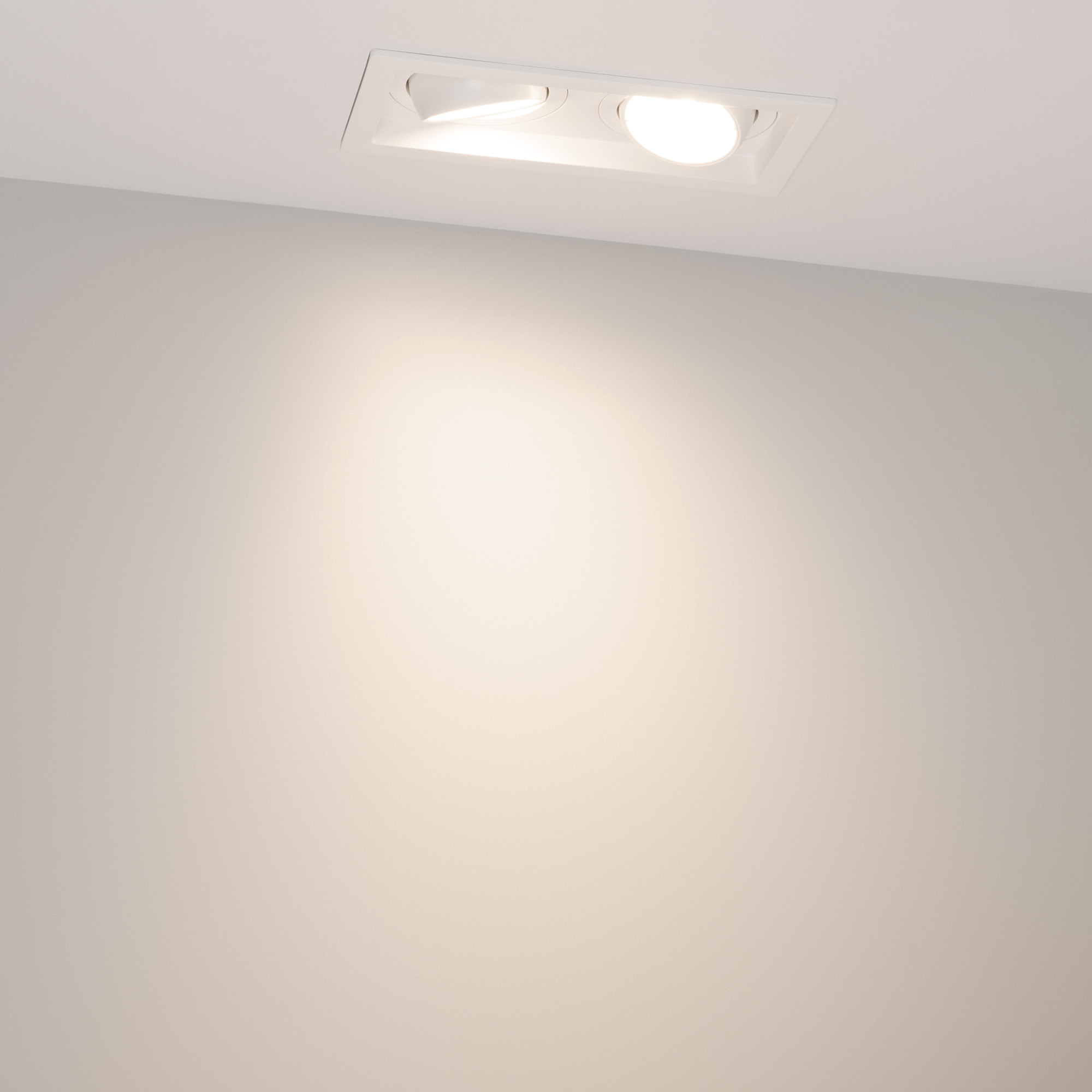 Встраиваемый карданный светильник. Мощность 2х12 Вт, св. поток 2788 лм, 116 лм/Вт, тёплый 4000 K, CRI>92, угол 40°, напряжение питания 230 В. Белый корпус из алюминия, белая вставка, степень защиты IP20. Размер: длина 170 мм, ширина 90 мм, высота 80 мм. Монтаж встраиваемый, установочное отверстие: длина 155 мм, ширина 75 мм. Драйвер 27-40 В, 300 мА, пульсация <2%.