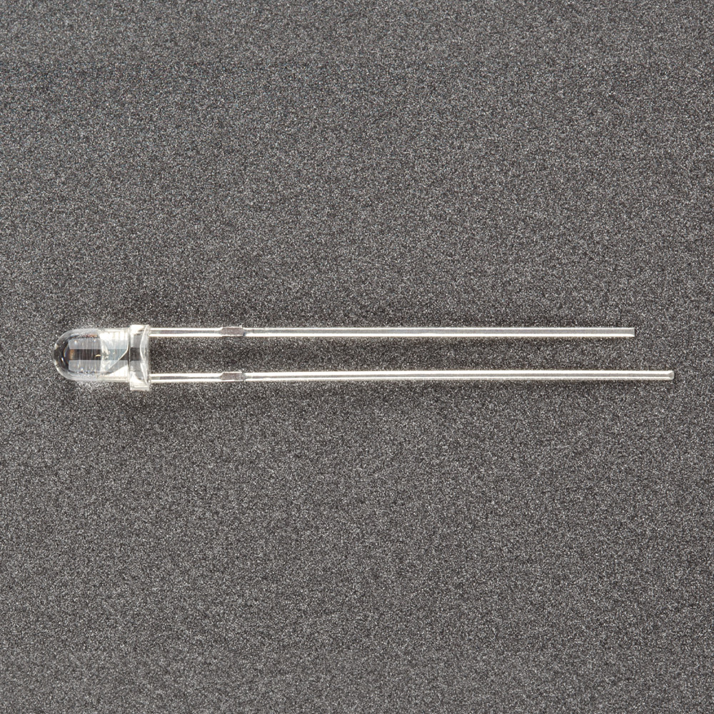 Выводной светодиод круглый, d=3мм, прозрачная линза.Цвет свечения белый (6000-10000К). Угол 30°. Сила света Iv=1500-2500 мкд при If=100мА. Встроенный резистор на 12 В. VF=11-14 В.